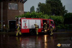 Het had zomaar gekund tijdens de onweersbui van donderdagavond. Maar voor de oefenavond van de vrijwillige brandweer van Vaassen kwam het wel goed uit dat er een onweersbui was.