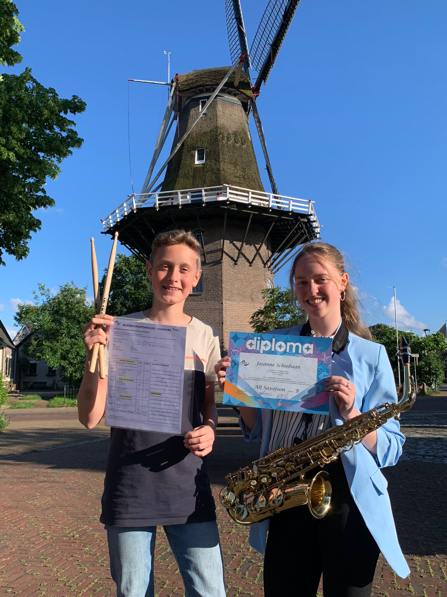 Josanne en Peter Schiebaan, jeugdleden van het Vaassens Fanfare Corps, zijn zaterdag 25 mei geslaagd voor het praktijk muziekexamen. Beiden hebben eerder al het theorie-examen behaald, waarna het nu tijd was voor het praktijkgedeelte. Tijdens het praktijkexamen is Josanne geslaagd voor haar B-diploma op de alt saxofoon met 47,5 punten. Peter is geslaagd voor het A-diploma ‘slagwerk ongestemd’ met 48 punten. Tijdens het praktijkexamen moesten Josanne en Peter verschillende vaardigheden en nummers ten gehore brengen aan de examencommissie, waaronder diverse technische oefeningen, prima vista spelen en een nummer uit het hoofd.
