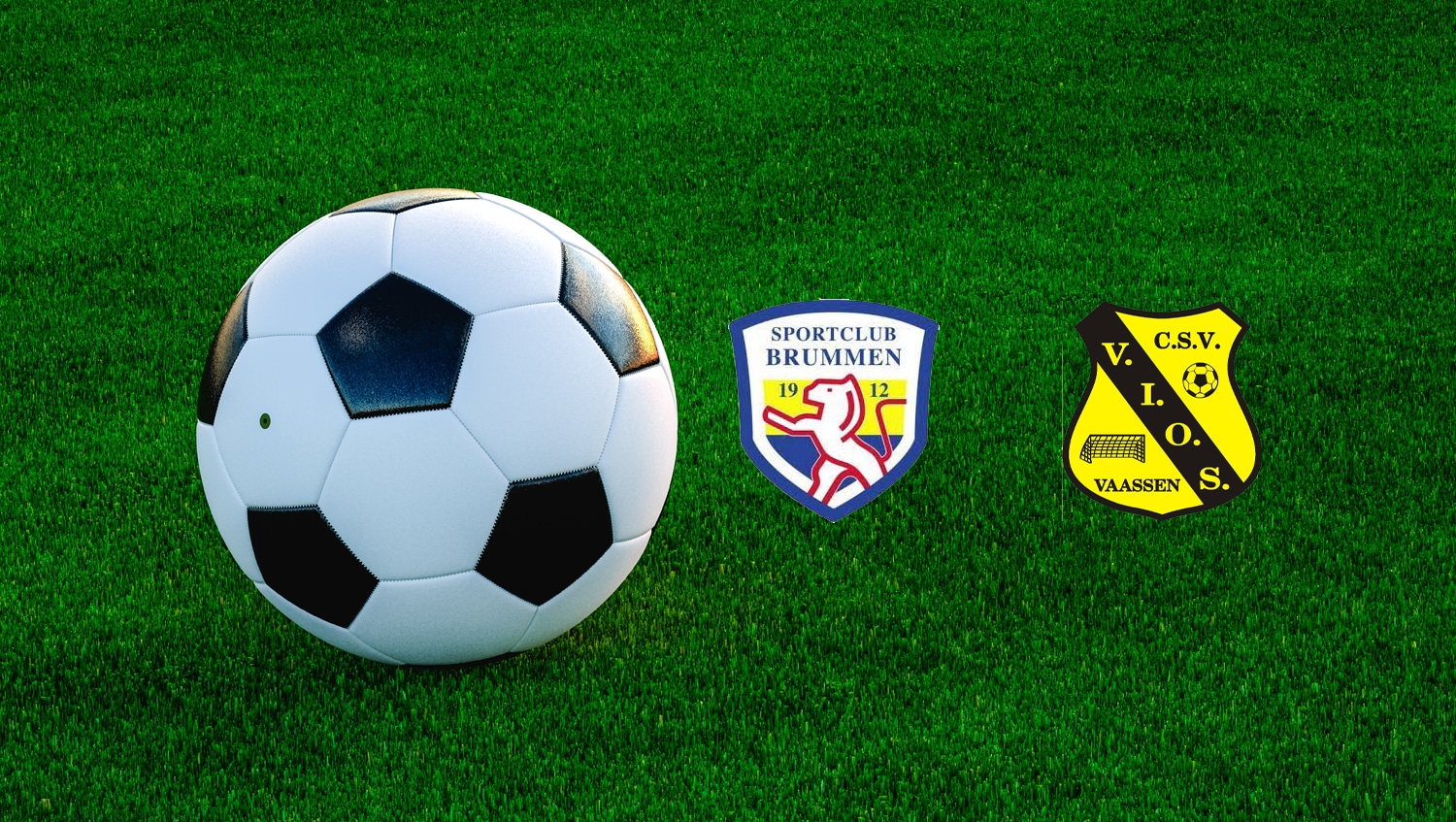 De Openingsfase van Brummen tegen Vios gaat gelijk op zonder grote kansen. Het spel speelt zich vooral af op het middenveld. Een afstandsschot van Joas Pol in minuut 13 mist richting en eindigt in de ballenvanger. Uit een corner wordt Brummen gevaarlijk, maar de kopbal belandt naast het doel. Vios dringt meer aan en voetbalt steeds meer rondom de 16 van de tegenstander. De scherpte in de eindpass ontbreekt alleen. In de 25e minuut een grote kop kans voor nummer 10 Mauro Rodijk. Maar hij maakt niet genoeg contact met de bal en deze gaat voorlangs. Stef Koldenhof komt verkeerd terecht na een duel bij een corner. Hij kan helaas niet verder en wordt vervangen door Rein van Wijnbergen. Die na een lange knieblessure zijn rentree maakt. Na een halfuur komt Brummen er gevaarlijk uit. Een lage voorzet komt voor de voeten van een aanvaller maar de inzet kan geblokt worden door de verdedigers uit Vaassen. Vlak voor rust passeert Mehmet 2 tegenstanders en nummer 3 voelt zicht genoodzaakt om aan de noodrem te trekken. De gele kaart wordt getoond voor het onderbreken van een gevaarlijke Vios aanval. Vlak voor de rust nog een grote kans voor VIOS Vaassen na een voorzet van Mathijs Meijer. De keeper laat de bal los maar Joas Pol krijgt de bal niet op goal. De scheidsrechter blaast driemaal op zijn fluit voor de rust en de bril stand staat nog op het scorebord in Brummen.