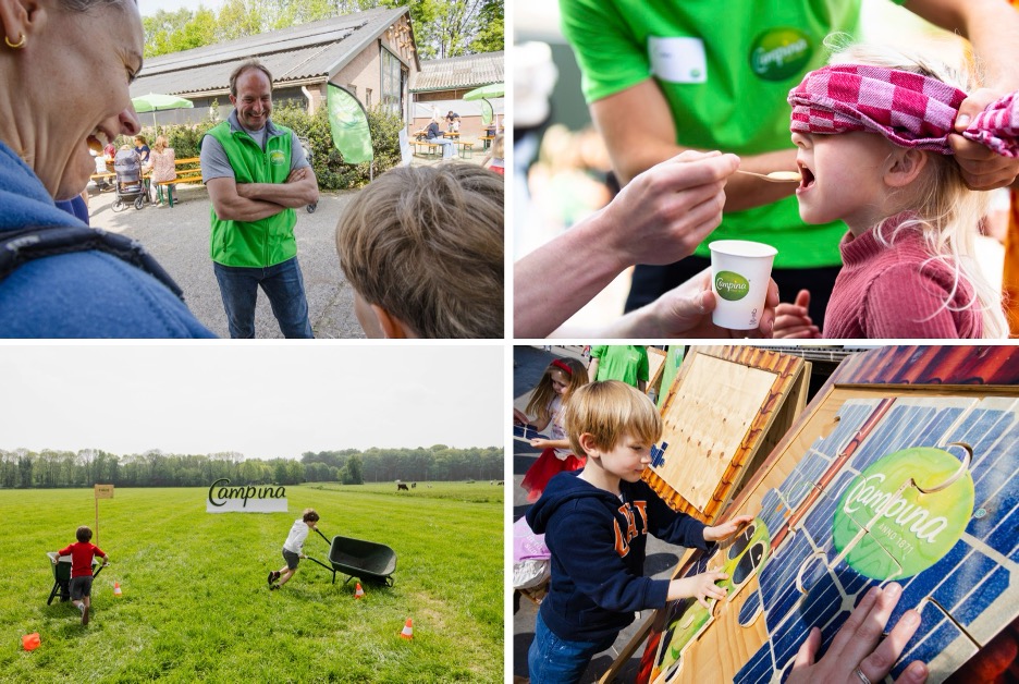Campina-producten – waaronder yoghurt, melk en kwark – zorgen voor een voedzame basis voor een goede start van de dag en een actief leven. Tijdens de Open Boerderijdagen laten boeren de oorsprong van deze producten zien. Daarnaast geven ze uitleg over hoe zij bijdragen aan een duurzame toekomst. Veel Campina-boeren zijn bijvoorbeeld ook energieboer: met behulp van windmolens, zonnepanelen en mestvergisters wekken zij groene energie op. Deze groene boerenstroom wordt vervolgens gebruikt voor de productie van alle Nederlandse Campina-producten.