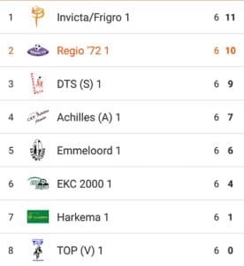 Volgende week staat er een heuse topper op het programma. Dan neemt Regio ’72 het in Kollum op tegen koploper Invicta. Een absolute kraker en gezien de resultaten van beide teams dit zaalseizoen, belooft het een spannend potje te worden.