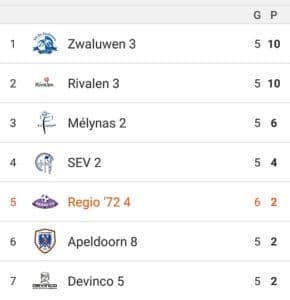 Tegen half drie stond de wedstrijd Regio ’72 4 tegen Apeldoorn 8 op het programma. Apeldoorn begon beter aan de wedstrijd en pakte een voorsprong. Maar bij de stand 4 tegen 7 kwam de Vaassenaren beter in de wedstrijd.