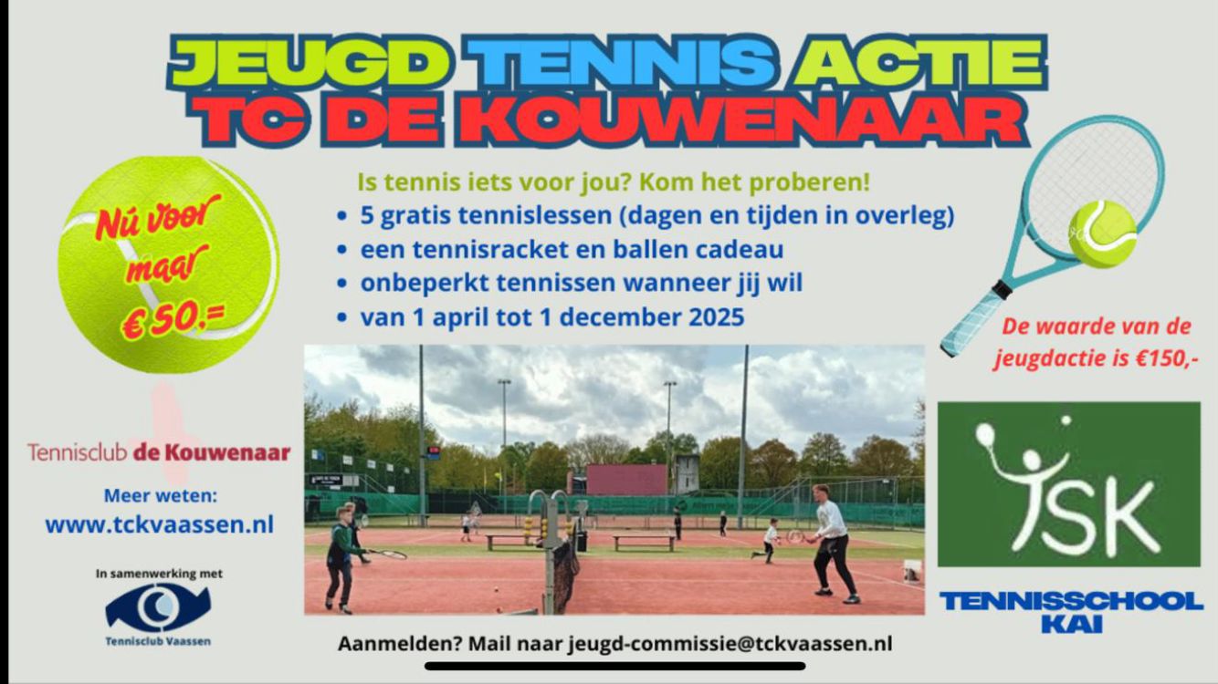 Kijk op www.tckvaassen.nl en www.tennisschoolkai.nl