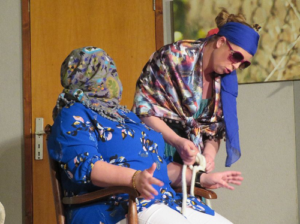 foto 4: Wilma Bronsink en Natanja Goelema (als Beppie Vaak, vastgebonden en Loes Zijlstra)