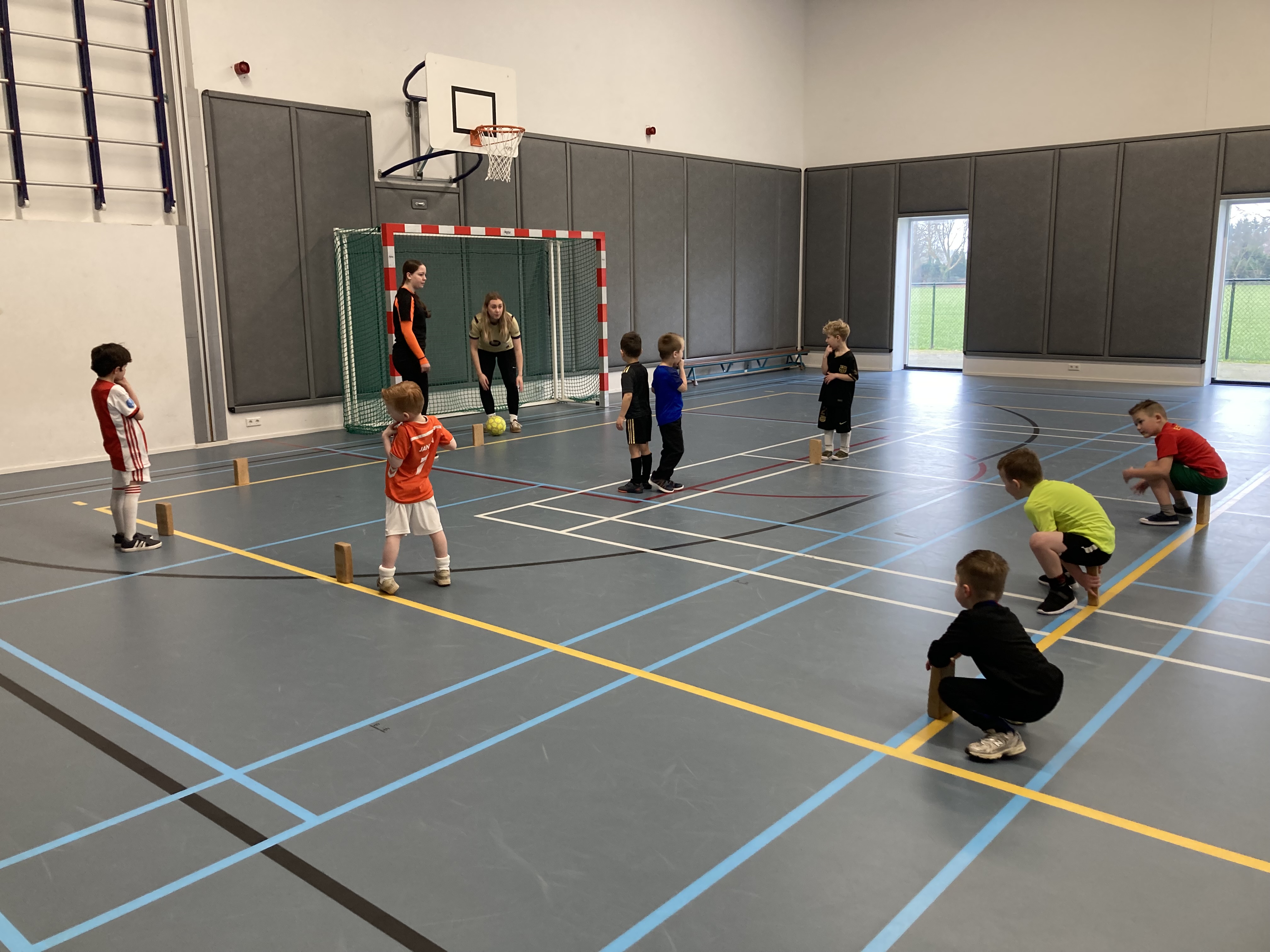 Het programma was weer uitdagend en gevarieerd. Er werd fanatiek gestreden tijdens het populaire blokjesvoetbal en het lachen galmden door de zaal bij het spannende kat-en-muis spel. Natuurlijk mocht het serieuzere werk niet ontbreken: er werd vol overgave geoefend op het afronden op de goal. De ochtend werd traditioneel afgesloten met een ‘echt’ partijtje voetbal, waarbij het plezier er aan alle kanten vanaf spatte.