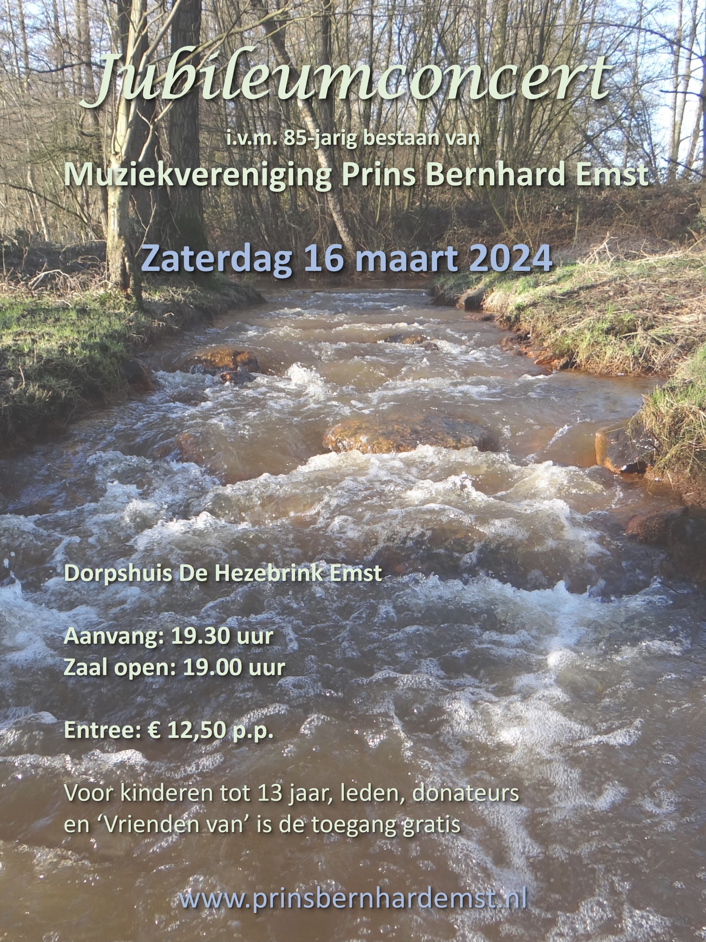 Dit jaar is het echter een bijzondere editie: de vereniging bestaat namelijk 85 jaar en viert dat met een prachtig Jubileumconcert. In het kader van dit jubileum is de jonge componist Tjeerd Nijhof gevraagd een muziekstuk te componeren over Emst. Ter inspiratie hebben de leden vorig jaar aan Tjeerd laten weten wat zij mooi, fijn en bijzonder vinden aan Emst. Inmiddels is het stuk gereed en heeft het de titel ‘In En Om De Sprengen’ gekregen. In het nummer worden het dorp Emst en haar omgeving muzikaal weergegeven: niet alleen het kabbelende water in en om de sprengen is te horen, maar ook de feestelijke klanken van het Emsterfeest. Benieuwd hoe het klinkt? Kom dan op zaterdagavond 16 maart a.s. naar de Hezebrink.