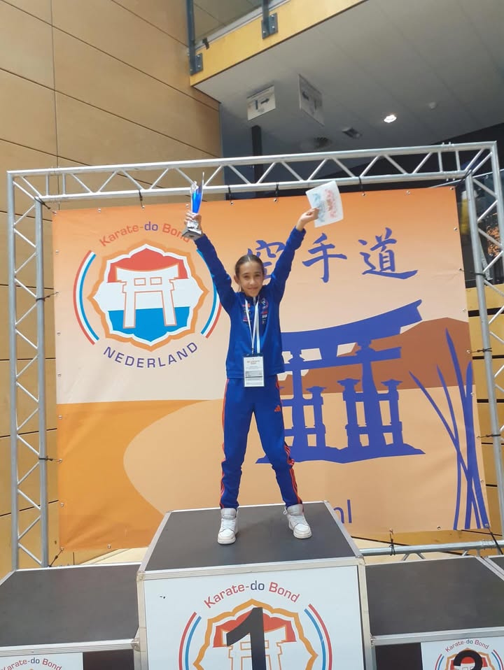 De 10-jarige Elyza Latuely uit Vaassen heeft een geweldige prestatie neergezet op het NK. Op zaterdag 30 november werd zij Nederlands Kampioen in Kumite, een vorm van karate waarin deelnemers sparren tegen een tegenstander. Een dag later, op zondag 1 december, behaalde ze een knappe 3e plaats in Kata, een technische oefenvorm waarin deelnemers vaste patronen uitvoeren tegen denkbeeldige tegenstanders.