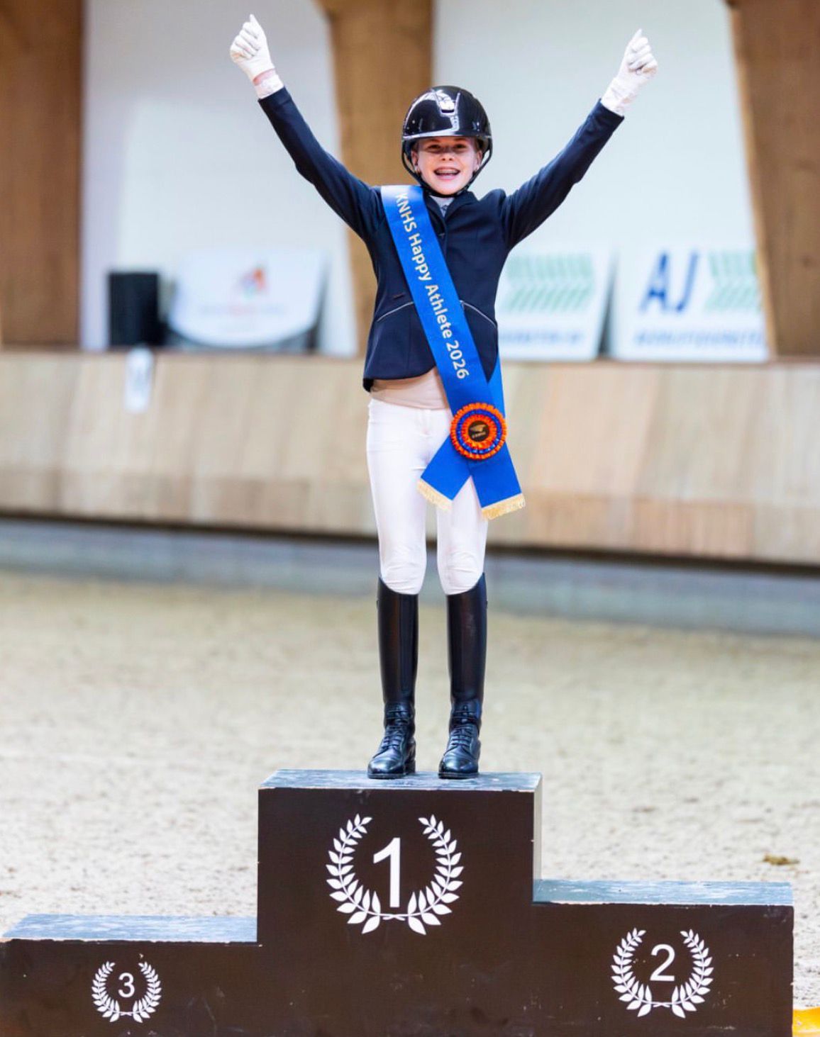 Liz ten Have reed met haar pony Koetsierhoeve Power Girl een super knappe proef in de klasse L1 dressuur cat. C. De jury’s beoordeelden haar proef met 66,42%. Dit leverde een hele mooie bronzen medaille op. Maar dat was nog niet alles. Alle combinaties werden tijdens het losrijden beoordeeld door een official en konden zo in aanmerking komen voor de Happy Athlete prijs.
