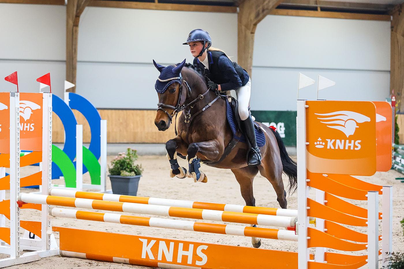 Zaterdag 28 februari mocht Lotte Driessen, lid van HV de Cannenburgh uit Vaassen, van start op de Nederlandse Kampioenschappen springen op het KNHS Centrum in Ermelo. Met haar pony Sunne D’Arbanville sprongen ze een mooi foutloos basisparcours in de 70 cm cat D/E en kregen hiermee 80 stijlpunten. De barrage ging op tijd en Lotte en Sunny gingen ervoor. Ze behaalden de 2e tijd van alle deelnemers. Opgeteld bij de stijlpunten uit het basisparcours, was daar dan een zilveren medaille en dus Reservekampioen van Nederland.
