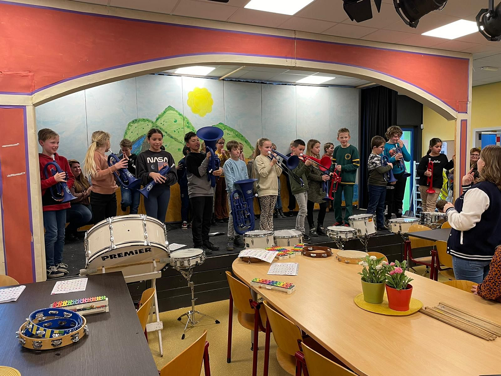 Van maandag 9 januari tot en met maandag 20 februari hebben leerlingen van groep 5 en 6 van basisschool ’t Mozaïek elke week een muziekles gehad van het Vaassens Fanfare Corps. Deze zeven weken begon met een introductie van de verschillende muziekinstrumenten: welke instrumenten zijn er bij een fanfare orkest? En welke functie heeft zo’n instrumentgroep in het orkest? Na de introductie hebben de leerlingen in twee blokken van drie weken afwisselend les gehad in slagwerk- en koperblaasinstrumenten.