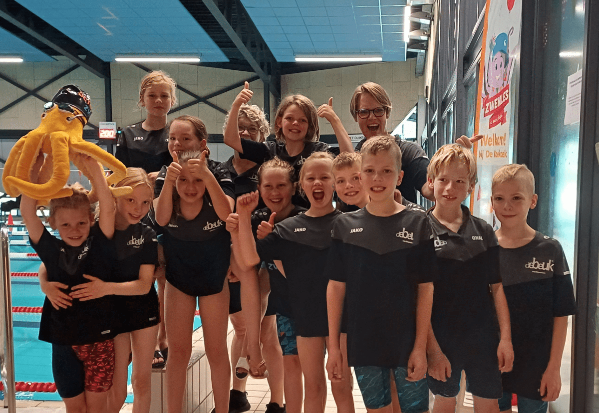 Suus, Annelinde, Iris, Lotte, Tessa, Lara, Esmee, Tim, Duuk, Ruben, Toby en Bram hebben allemaal laten zien wat ze waard zijn! Dit is de kroon op een mooi zwemseizoen.