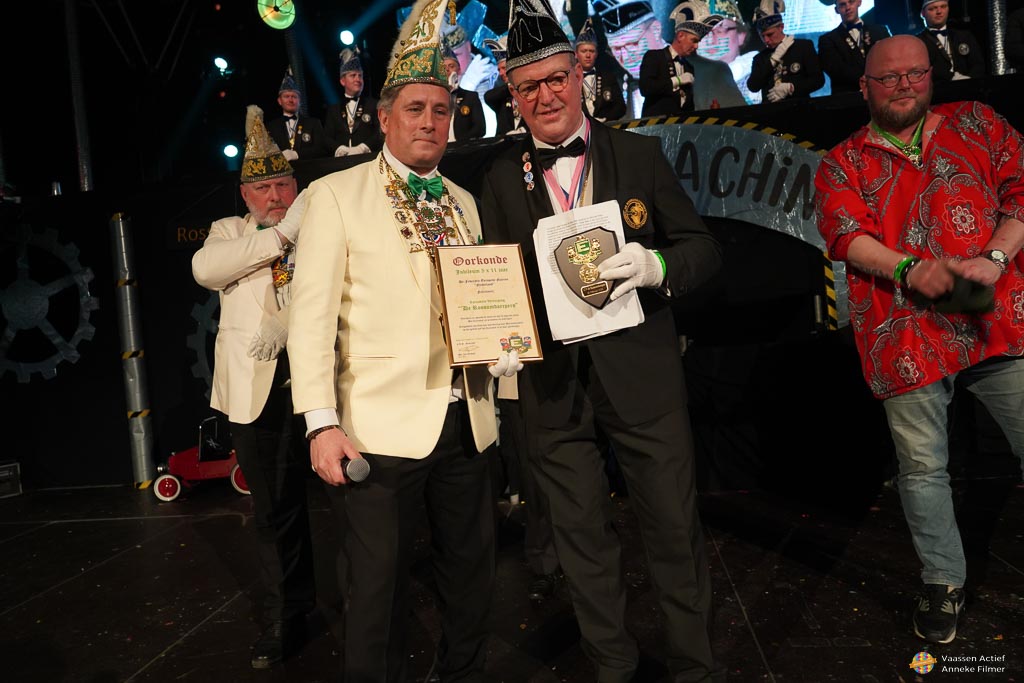 Speciale gasten waren zoals gebruikelijk de vertegenwoordigers van de Federatie Europese Narren. Zij hadden niet alleen de jaarlijkse onderscheiding bij zich die was weggelegd voor Rudie Vosselman, maar kwamen ook om de Rossumdaerpers te feliciteren met hun 55-jarig jubileum. Dit deel van de toespraak nam Juriaan Ibes eveneens voor zijn rekening, waarna hij mooie, exclusieve aandenkens gaf aan voorzitter Jan Hagen. Die had daarna de eer om Freddy van Schoonhoven te benoemen tot Ereridder der Rossumdaerpers.