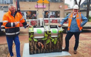 Wethouder Jan Aalbers nam het cadeau graag aan van directeur Huub Vervoorn, adjunct-directeur van Circulus-Berkel. De wethouder liet de ondergrondse container met hulp van de kraanwagenchauffeur op zijn plek in de grond zakken. Wethouder Jan Aalbers: “Deze mooie container is echt een aanwinst voor onze gemeente. Het is een prachtige onderstreping van het goede effect dat we zien van onze gewijzigde restafvalinzameling. In het eerste kwartaal van dit jaar is de hoeveelheid restafval al met zo’n 40% verminderd. Deze container zal daar zeker ook aan bijdragen.”