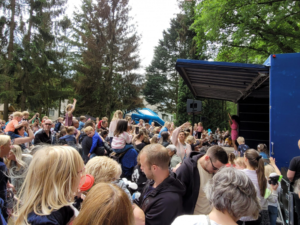 Honderden ouders, nog veel meer kinderen, kwamen op het Tuinfeest af. Wat een drukte zeg. Zo begon het Tuinfeest al om 12.00 uur. Kinderen konden genieten van o.a. springkussens, ballonnenclown, suikerspinkraan, spelletjes, suikerspinkraan, poffertjes, slush, een hotdog kar. Maar de absolute kraker van het Tuinfeest was het optreden van Fenna. Fenna is bekend van Z@ppelin. De kinderen waren helemaal door het dolle heen door haar kinderliedjes.
