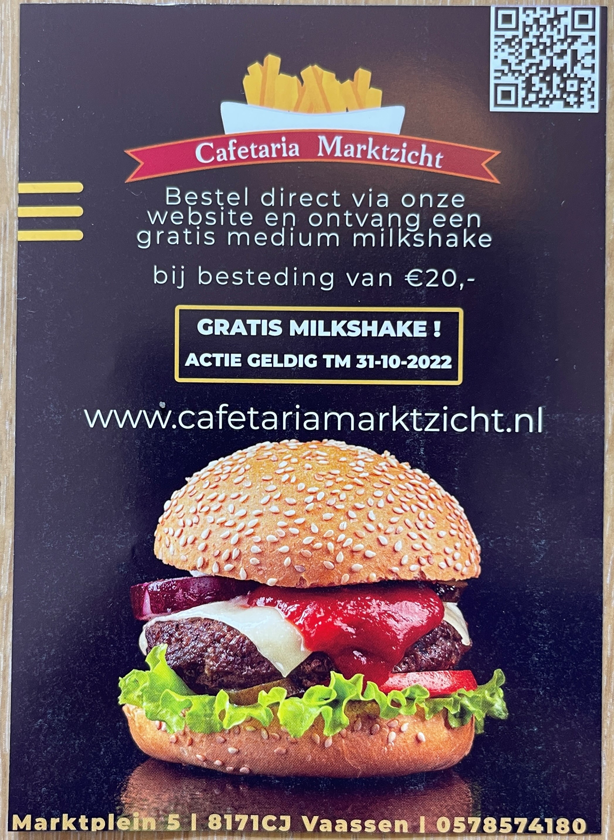 Gratis medium milkshake bij een bestelling vanaf € 20.00.