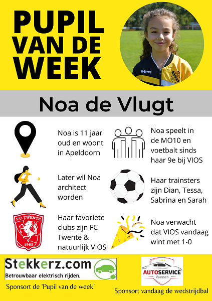 Noa speelt in MO10 en voetbalt sinds haar 9e bij VIOS