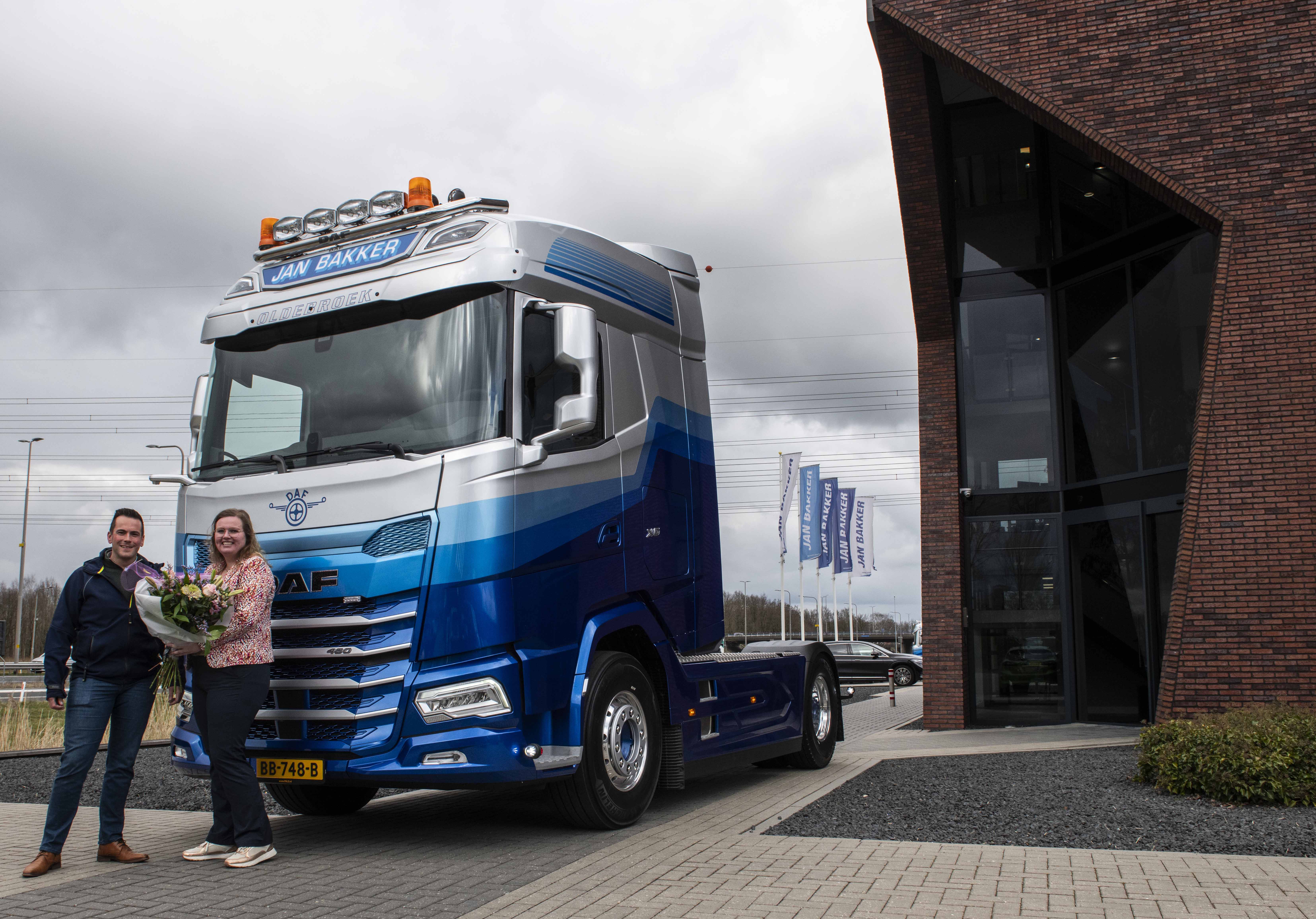 Sven Bekamp, werkzaam bij Garagebedrijf Pals, vult haar aan. “Als partner in mobiliteit streven we steevast naar langdurige relaties. Jan Bakker is één van onze belangrijkste opdrachtgevers. We maken van elke aflevering een feestje. Vooral voor de chauffeur natuurlijk. Maar dit keer wilden we daar wat extra nadruk op leggen door ook Angela als kersverse eigenaresse van Jan Bakker nog eens extra in het zonnetje te zetten en haar een bloemetje te geven.” Angela Docter-Bakker heeft het bedrijf namelijk ruim een jaar geleden overgenomen van haar vader. Ze vertelt: “Voor mij als nieuwe generatie van dit familiebedrijf is dit een erg mooie uitdaging. Al ben ik blij dat mijn vader zich als oprichter van dit bedrijf nog altijd inzet voor ons bedrijf. Samen dit bedrijf runnen, is het mooiste wat er is.”