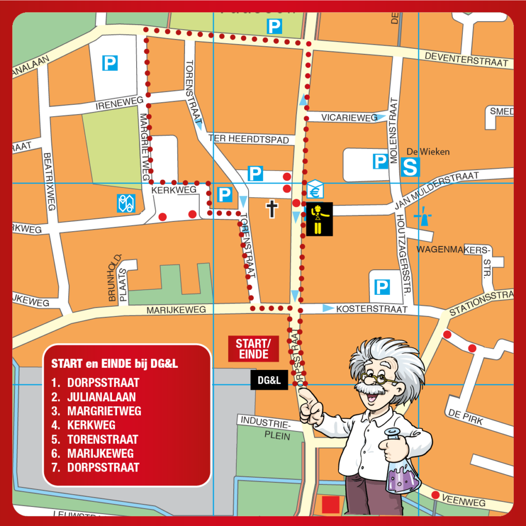 Sint en zijn pieten maken hun route via de Dorpstraat, Julianalaan, Margrietweg, Kerkweg, Torenstraat, Marijkeweg en de Dorpsstaat.