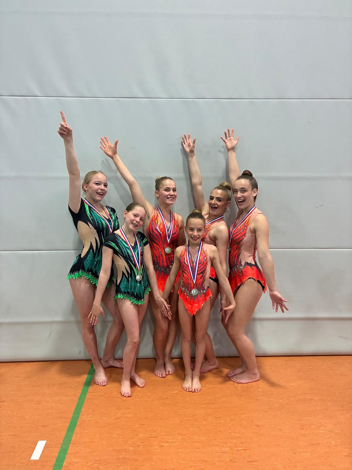De wedstrijddag begon sterk met Sofie en Elena, uitkomend in supplement 4 pupil. Met een prachtige score van 22.100 punten wisten zij een knappe derde plaats te behalen. Ook bij de trio’s in dit supplement lieten Fabiënne, Jolene en Mirthe zich van hun beste kant zien. Met 20.040 punten eindigden zij net naast het podium op een mooie vierde plek.