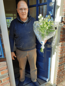 Helaas konden de tien jubilarissen niet fysiek in het zonnetje gezet worden, maar voorzitter Ben Meuleman had voor ieder een uitgebreid dankwoord voor hun jarenlange inzet en verbondenheid. De verenigingsspeld en natuurlijk een fraaie bos bloemen is later bij de jubilarissen thuisbezorgd.