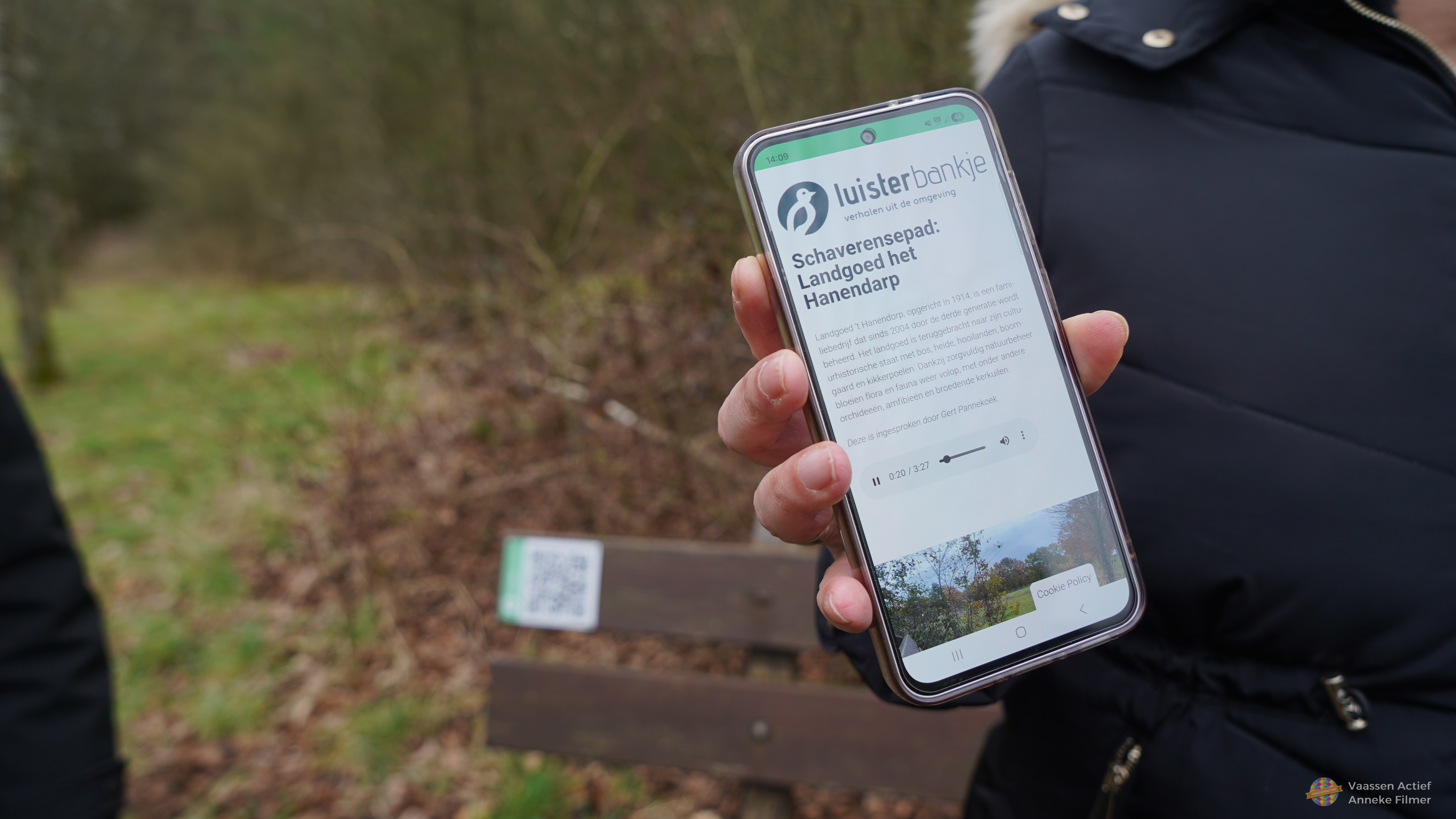 Op dinsdag 24 februari om 14.00 uur vond de officiële onthulling plaats van het luisterbankje op het Schaverensepad, op het terrein van de familie Pannekoek. De onthulling werd verricht door Gert Pannekoek en Sjoerd Bokma, die op het terrein wonen waar het bankje met de QRcode staan.