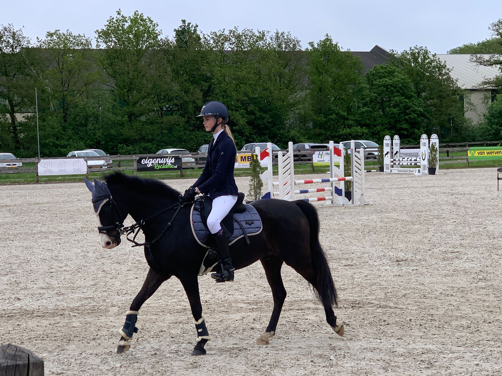 Lotte Driessen startte zaterdag 4 mei op de 1e selectie springen voor pony’s. Met haar pony Jasper startte ze voor het eerst in de klasse L/0.80m cat. C. Ze reden twee keurige foutloze rondes en behaalden zelfs een hele knappe 1e prijs!