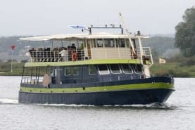 en dan genieten de opvarenden in alle rust van het voorbijtrekkende landschap vanaf het water.