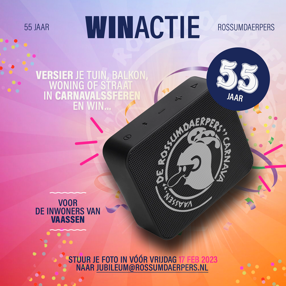 Wie in aanmerking wil komen voor de JBL speaker waarmee je eigen muziek kunt afspelen, kan vóór 17 februari een foto sturen naar jubileum@rossumdaerpers.nl.