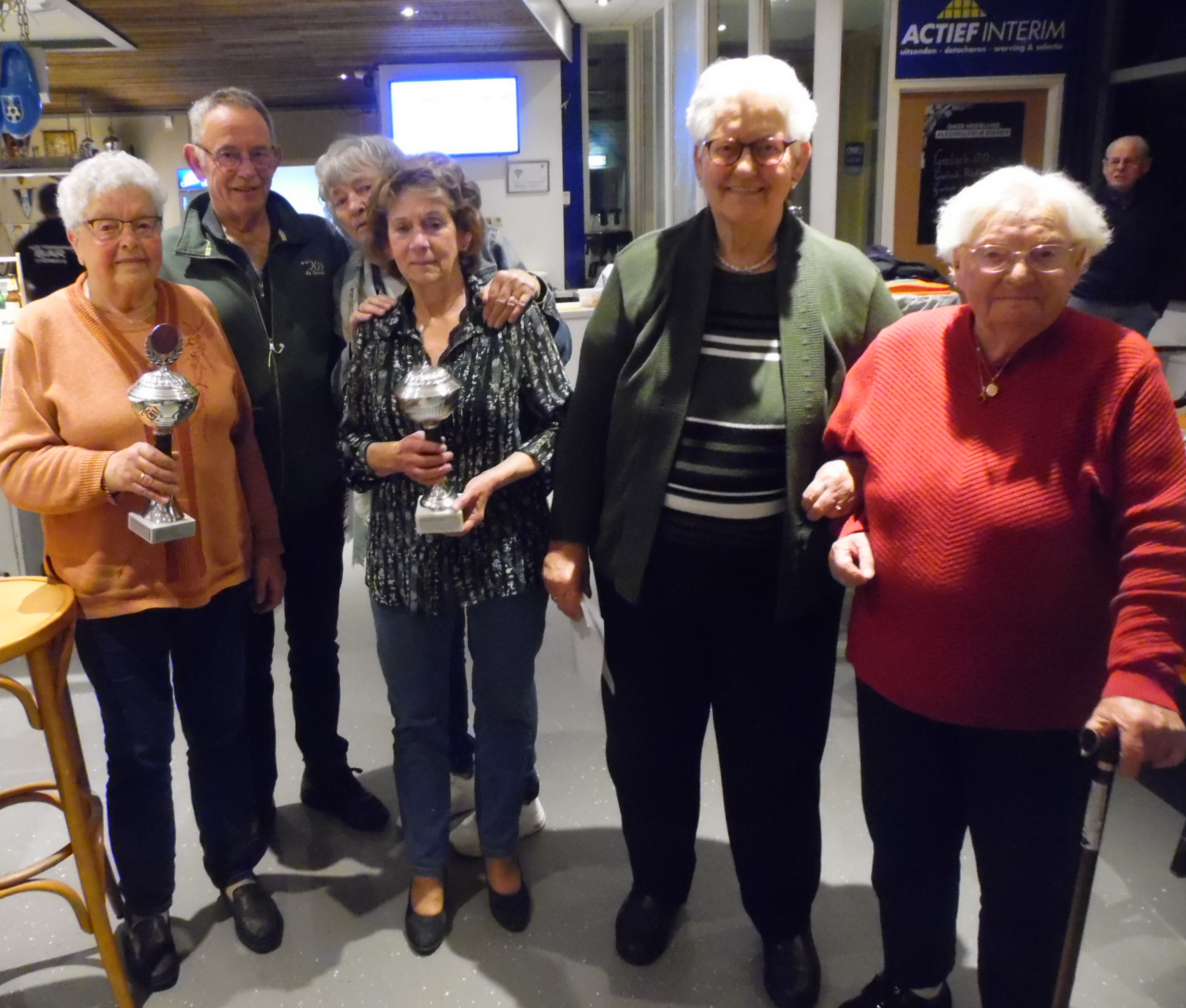 De winnaars van het kaarten mevr. M. Schreurs, dhr. J Schepers, mevr. A van de Esschert, mevr. M. de Vries, mevr. R. Bonhof en mevr. S. Berkhoff.